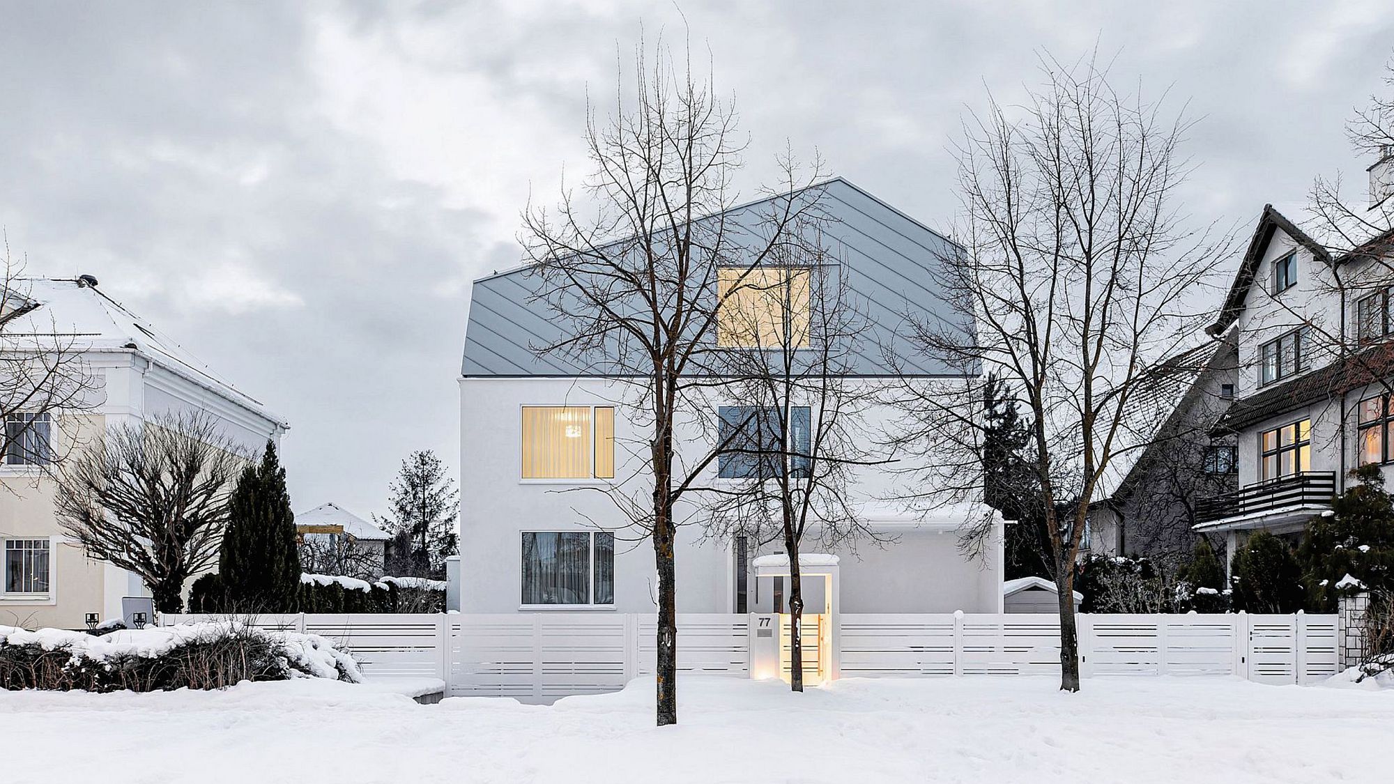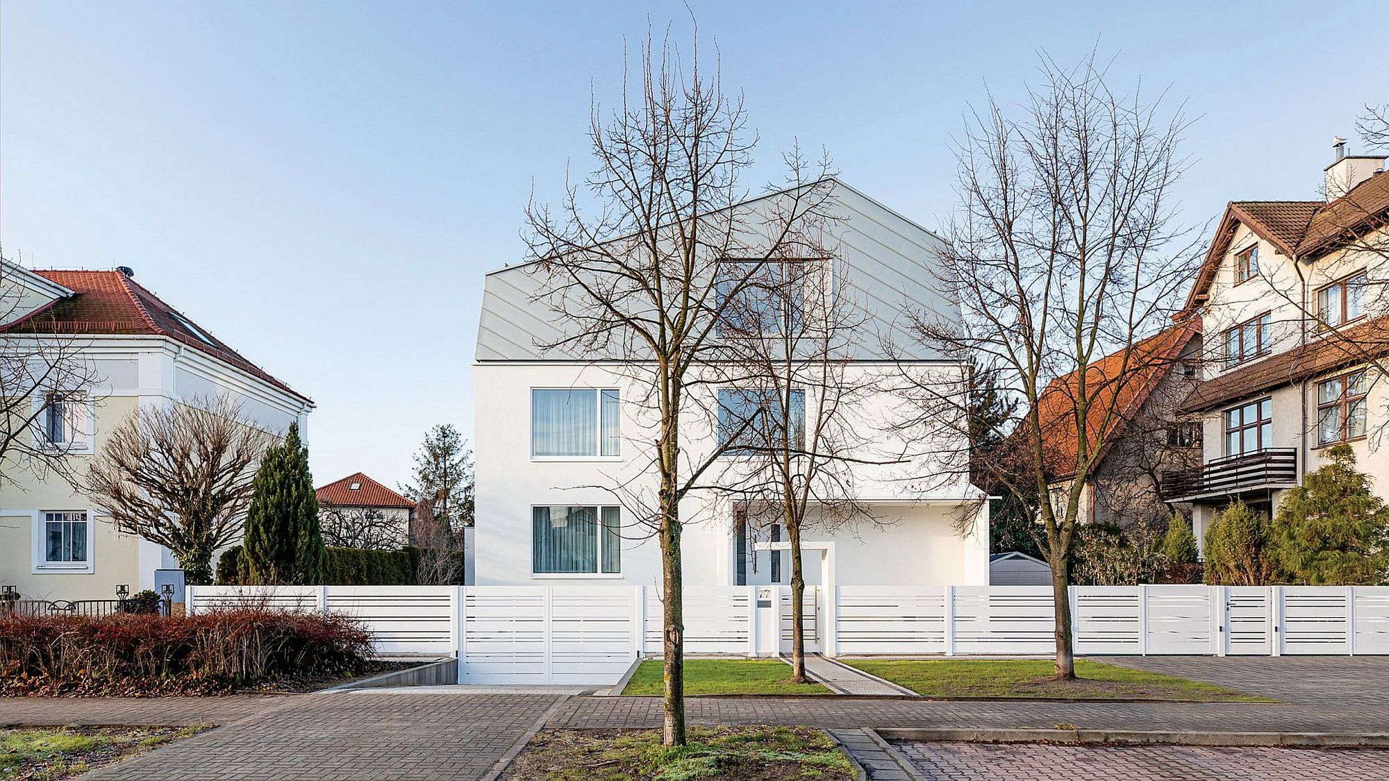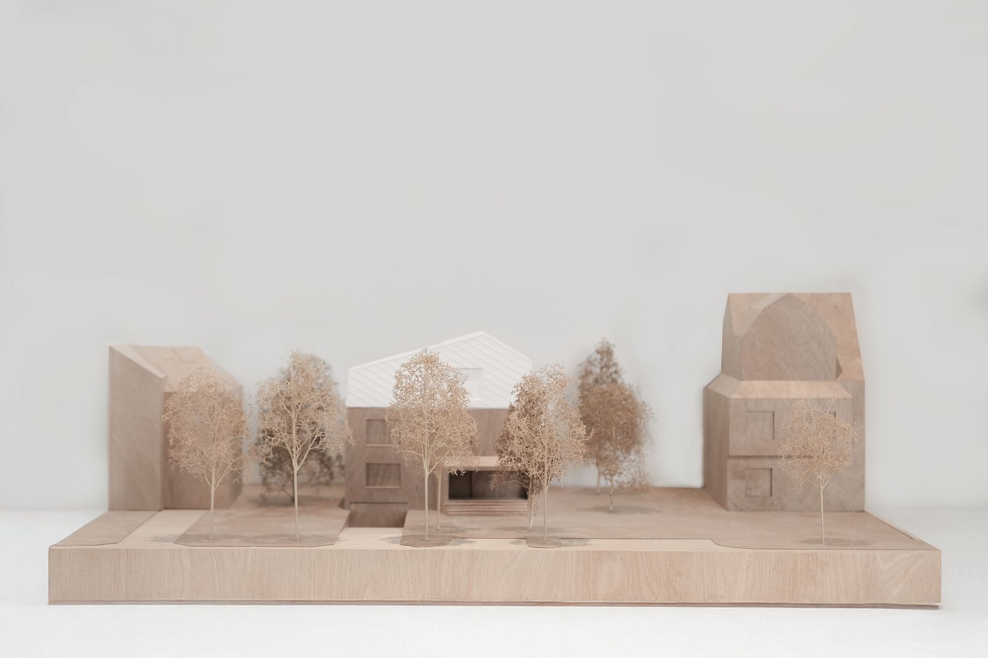 Budynek został świadomie wpisany pomiędzy dwa sąsiednie obiekty. Jeden z nich jest niższy, drugi wyższy. Linia dachu domu wynika bezpośrednio z połączenia tych dwóch wysokości, co nie jest przypadkowym formalnym gestem, ale konsekwencją szacunku do kontekstu i jednocześnie chęcią jego twórczej reinterpretacji.