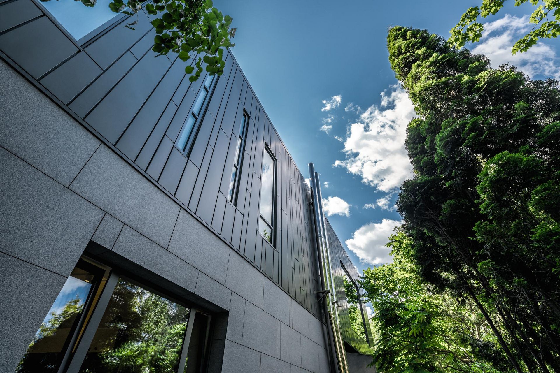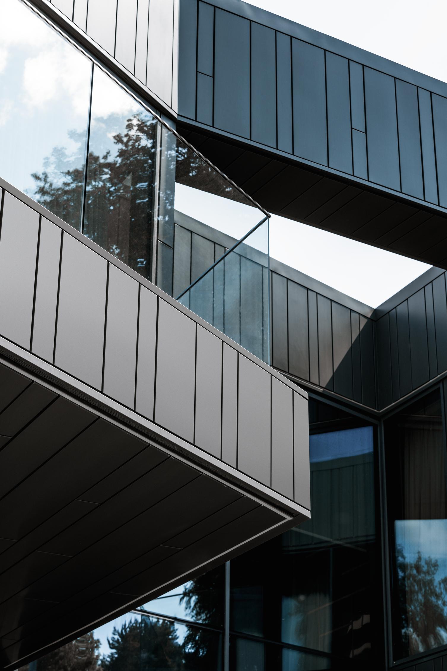 Pieczołowicie wykonane detale i utrzymane linie podkreślają wyjątkowość projektu, a przeszklone powierzchnie dodają przestrzenności. Realizacja stylowego budynku pod Moskwą z wykorzystaniem systemu paneli z blachy RHEINZINK-prePATINA schiefergrau ma wyjątkowy wyraz oraz odpowiada trendom nowoczesnej architektury w budownictwie jednorodzinnym.